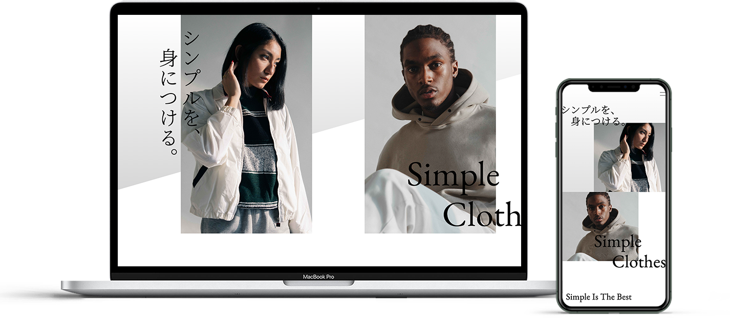 ミニマルで洗練されたデザインを追求したアパレルブランド「SimpleClothes」のWebサイト。